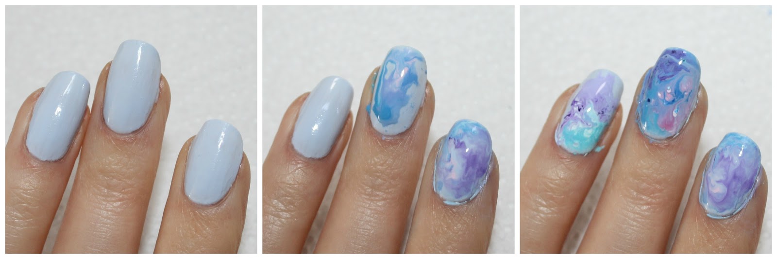 The base coat is Barry M's 'Eat My Dust' but is pretty much covered in the design! I did this by really watering down acrylic paint and marbling the colours together! I like to think the marbling symbolises how muddled up my brain gets in the middle of an anxiety attack!